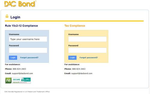 • Return to the DAC Bond home page and type in your username and password in the fields provided under the Rule 15c2-12 Compliance section.