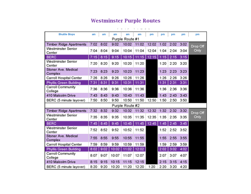 Please Note: Purple Route #2 is currently suspended